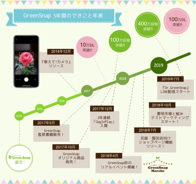 植物コミュニティアプリ「GreenSnap」を運営するGreenSnap株式会社(東京都千代田区、代表取締役:西田貴一)は、2019年8月28日(水)にサービス開始から5周年を迎えることができました。