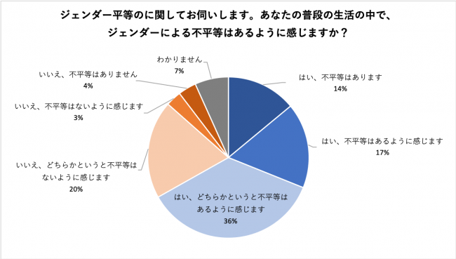 3.49.8%の方が、学校や職場、また収入の違いでジェンダーの不平等さがあるように感じていることがわかった。