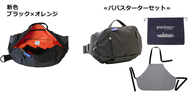 今回は新色のブラック×オレンジを追加。また、出産準備時期や育休中にパパ用エプロンがセットになったパパスターターセットもラインナップしています。