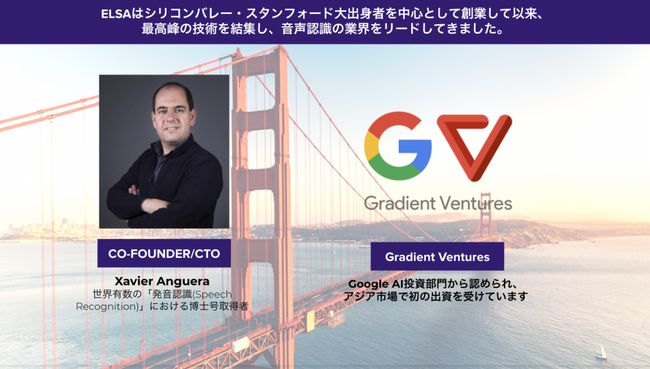 ELSAは、2015年にGoogleのAI投資部門より出資を受けて生まれた、米国・シリコンバレー発、発音とスピーキングに特化したAI発音コーチアプリです。