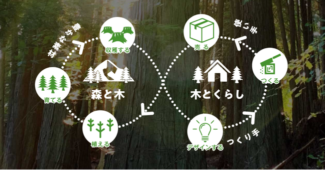 豊かな森、循環する社会を作るために、地域の木材、作り手、デザイン、売ること、そして使い手がつながる世界を作りたい。製造販売するだけではなく、現在林業が抱えている課題や、各地の生産チームの技術の高さや想いなどを伝えて行くことを一つのミッションとしています。