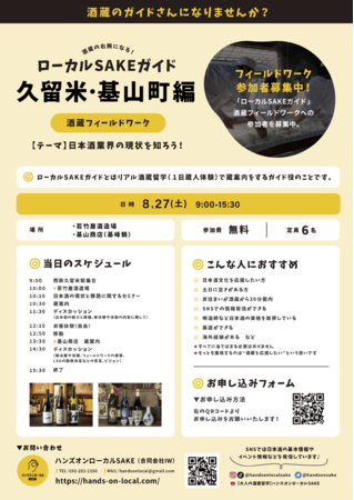 【酒蔵の右腕!ローカルSAKEガイド募集】福岡・佐賀の酒蔵で酒蔵フィールドワーク開催!参加者募集