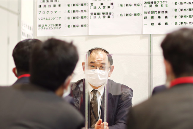 1開催あたり3〜4社程度の企業が参加し、会社説明を聞いた後、各社ブースに分かれて質疑応答を行います。大型の説明会や面接の場では聞きにくい疑問など、直接企業の採用担当者から話が聞け、業界研究や職種研究などの場としても活用できます。 また、希望者はその場で企業への応募もできるので、就職に直結するイベントでもあります。