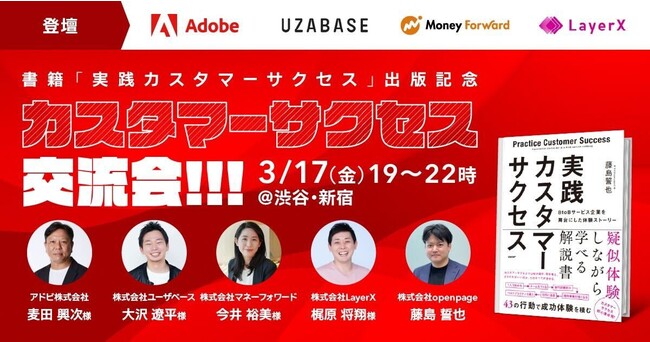 米国流のカスタマーサクセス(以下、CS)を国内で広く啓蒙する株式会社openpage(本社:東京都新宿区、代表取締役:藤島誓也)は、代表藤島の初めてとなる著書「実践カスタマーサクセス BtoBサービス企業を舞台にした体験ストーリー」の出版を記念し、CS担当者向けの交流会を開催いたします。2023年3月17日(金)19:00より、場所は渋谷駅近辺の会場となります。