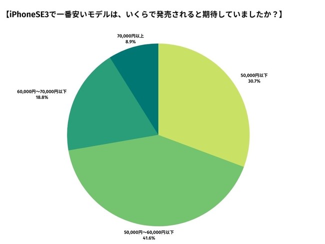 5万円以下の新型iPhoneSEを期待した人は、約30%であることがわかりました。