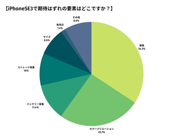 「iPhoneSE3の期待はずれの要素はどこですか?」という質問の中で、最も多かった回答が価格であり、3割以上を占めていました。
