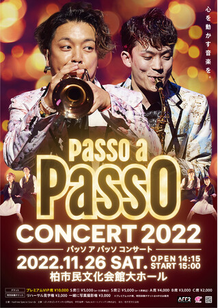 柏市出身トランペットとサキソフォンの2人組「Passo a Passo」が、毎年恒例、今年で9回目となる「Passo a Passo Concert 2022〜心を動かす音楽を〜」を 2022年11月26日(土)に、地元である柏市民文化会館大ホールにて開催します。