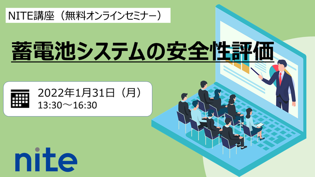 独立行政法人製品評価技術基盤機構 (NITE(ナイト))は、『蓄電池システムの安全性評価に関するセミナー』を2022年1月31日(月)に開催いたします。