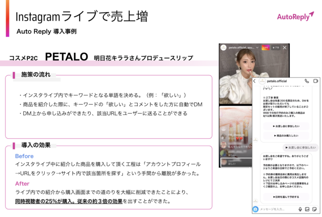 〜ライブ中に商品URLをDMで自動送信するイメージ〜