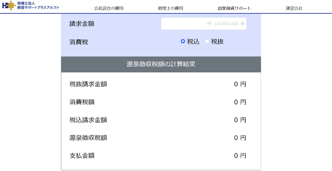 起業家のチャレンジを総合的に支援する株式会社経営サポートプラスアルファホールディングス(所在地:東京都豊島区)および税理士法人経営サポートプラスアルファ(同左)は、フリーランスが源泉徴収税額を把握するための「源泉徴収税額の計算シミュレーション」ツールを提供しています。