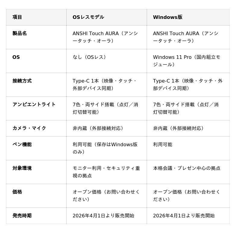 ANSHI Touch AURA、2026年4月販売開始。