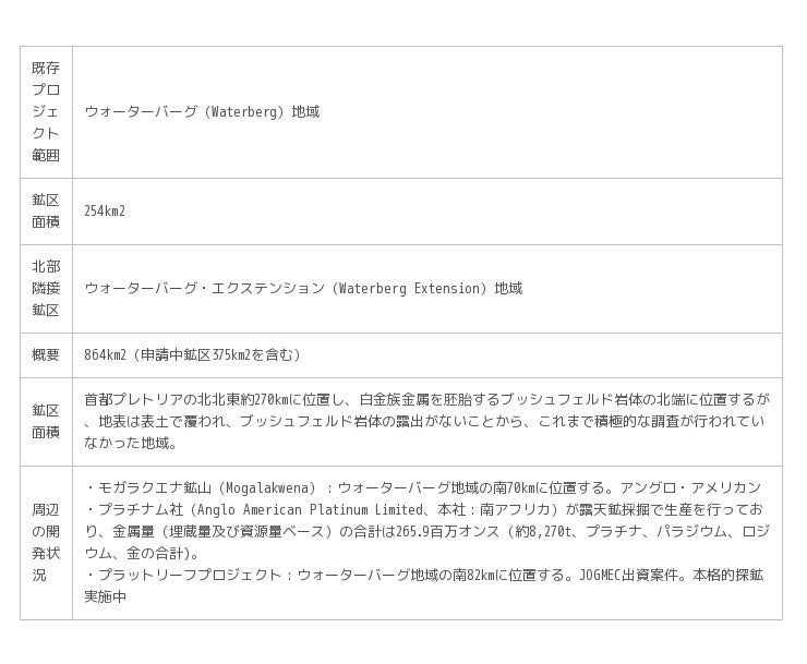 南アフリカ共和国・白金族プロジェクト、北部隣接鉱区との統合について