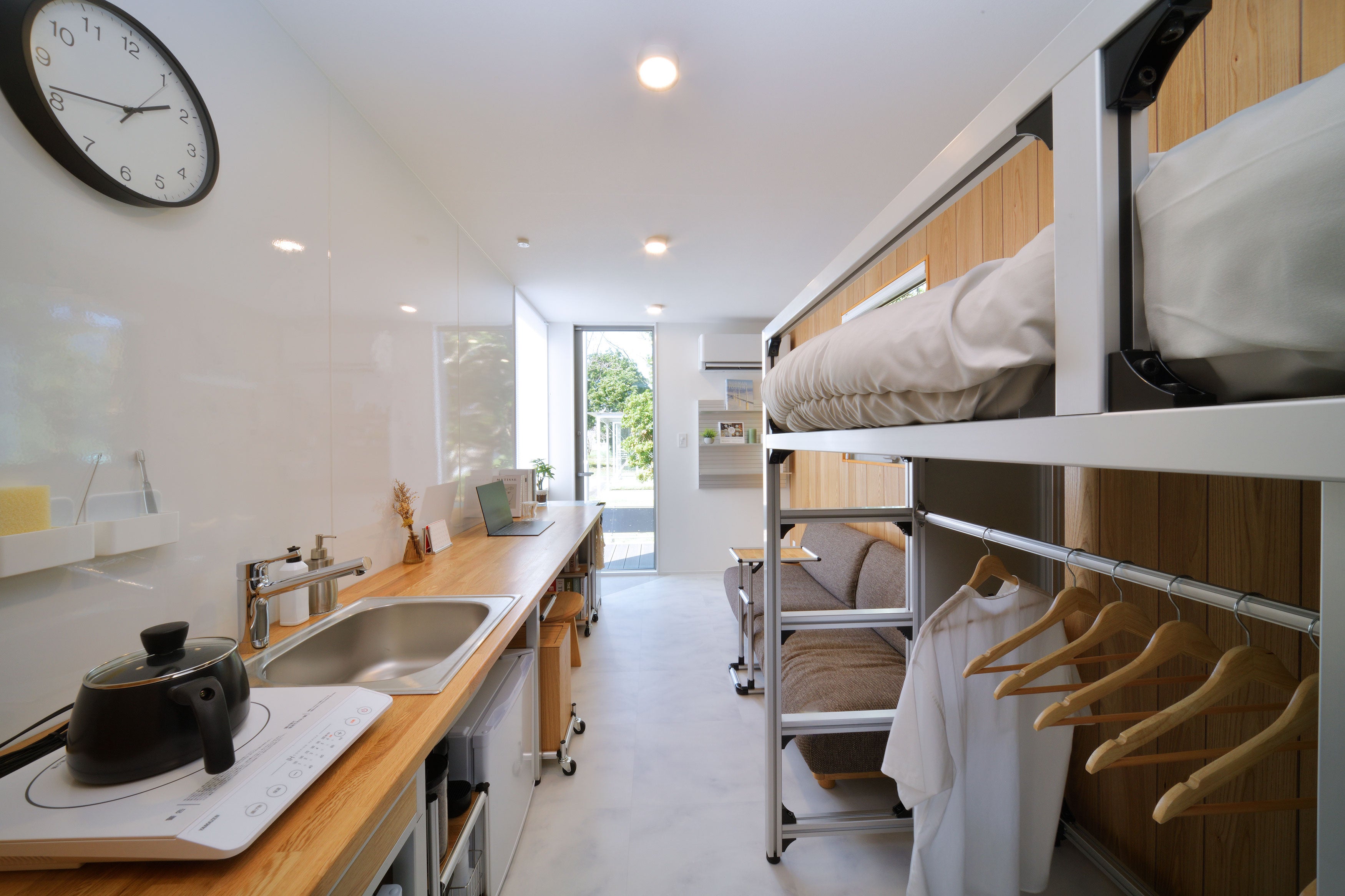 また、用途に応じてフレキシブルにカスタマイズが可能で、単身者向けのワンルーム住居としてはもちろん、ワークスペースや宿泊施設、可動式のポップアップ店舗、コンテナ型データセンターに至るまで、B to BやB to Cを問わず、幅広いシーンでご利用いただけます。