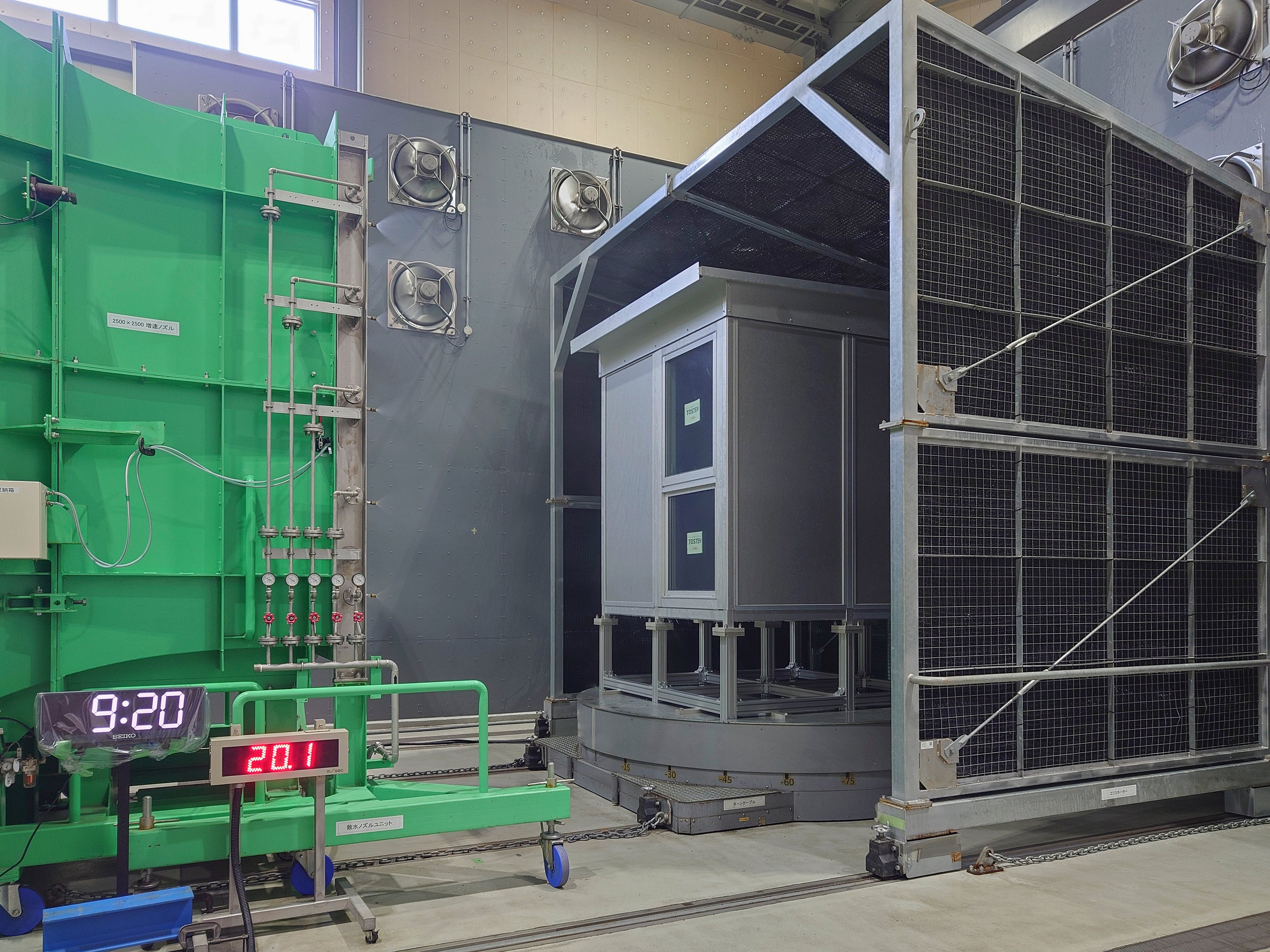 窓の水密性を評価するJIS等級W-3/W-4を元にした条件で、激しい暴風雨環境を再現し、室内への漏水がないことを確認。