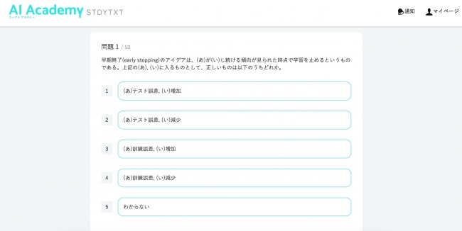 から無料登録を行うことで、独自で開発した機械学習に関する問題集を解くことが出来ます。