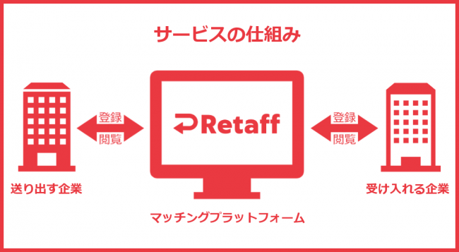 Retaffは「人員余剰の企業」から「人手不足の企業」へ一時的な雇用の移動を可能にする、従業員シェアリングサービスです。