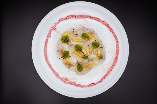スズキのカルパッチョ ハイビスカスヴィネグレット