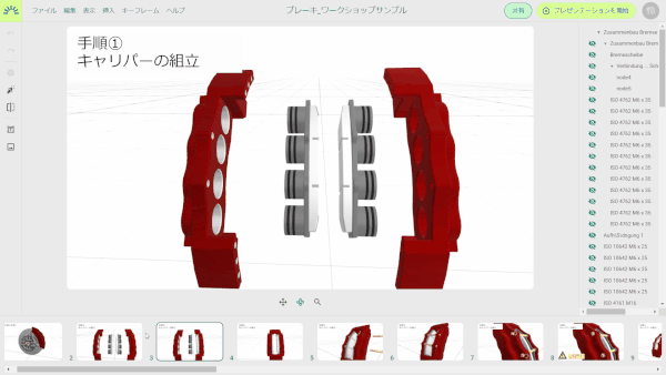 Sceneは3D CADデータをそのまま読み込み、立体的な手順書を作成できるツールです。直感的に操作できるため、3Dツールに慣れていない生産・製造部門でも簡単に使えます。