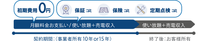 「エネすく」では太陽光パネルや蓄電池を導入する際に必要な初期費用は一切不要となる。導入時の工事費用や太陽光パネル等の機器も初期費用0円、定額の月額料金でスタートすることができる。昨今普及し始めたカーリースをイメージするとわかりやすい。