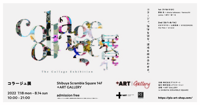 現代アートの作り手をサポートする株式会社プラスアート(所在地:東京都渋谷区、代表:新田卓)は、渋谷スクランブルスクエア14階にある「+ART GALLERY」にて2022年7月18日(月)よりあらゆるアートのイメージを切り取り、様々な物質を組み合わせることで創り出される芸術的な創作技法”コラージュ”にフォーカスをした展示を行う「The Collage Exhibition」を開催することをお知らせいたします。