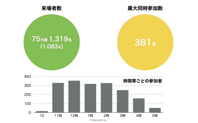 株式会社クスノキ(本社:東京都台東区/代表取締役社長:浅井拓海)は、公益財団大阪観光局、及び留学生支援コンソーシアム大阪の協力のもと開催したSpatialChatを活用したヴァーチャル留学生誘致イベント『EduOsaka2022』における当日参加者が、75カ国1,380名に達したことをご報告いたします