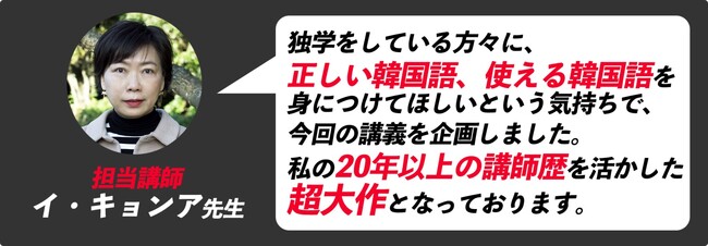 韓国語教室コリアンテナの代表講師であり、講師歴20年以上を誇るイ・キョンア先生が今回の講義を企画・制作いたしました。
