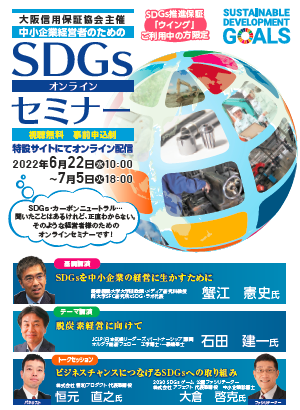 大阪信用保証協会(理事長 津組 修)では、SDGsに取組む中小企業者に対し、SDGs推進保証「ウイング」による資金支援や、企業内容を広報誌にて紹介すること等を通じ、府内中小企業者へのSDGsの普及促進に努めています。