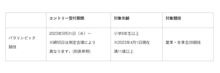 2023年度のパラリンピック競技について、本日5月31日よりWEBサイトにてエントリー受付を開始します。
