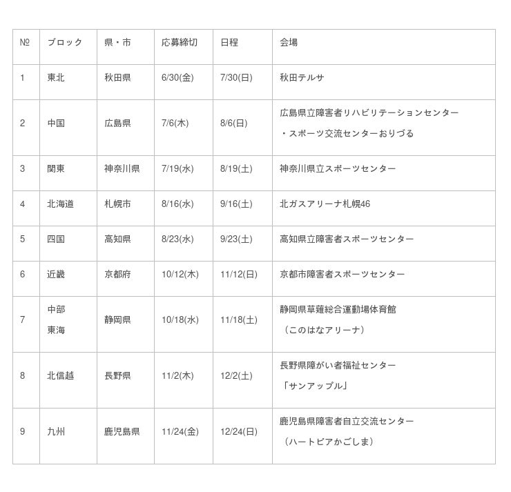 2023年度 J-STARプロジェクト パラリンピック競技/基礎測定会スケジュール(別表)