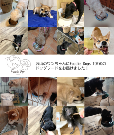 また、自治体や保護団体に救出されるワンちゃんたちは、保護される前の飼育環境が悪く、病気になっていたり体力が低下している場合も多くあります。そのようなワンちゃんたちに「栄養のある食事を提供することで元気になってもらいたい」、「真摯に取り組まれている動物愛護関連団体の皆様に少しでもご協力したい」という想いから、Foodie Dogs TOKYOのドッグフードを寄付をさせていただきました。