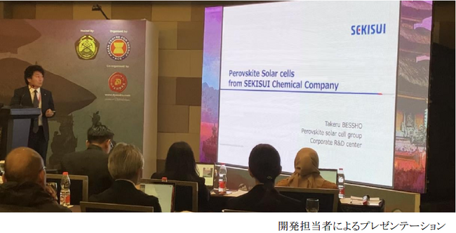 積水化学工業株式会社(代表取締役社長:加藤敬太、以下「当社」)は、8月25日にインドネシア・バリ島にて開催された「第5回CEFIA※1官民フォーラム」(インドネシア政府・エネルギー鉱物資源省主催)にてフィルム型ペロブスカイト太陽電池サンプルの展示とともに、開発の概要を説明しました。