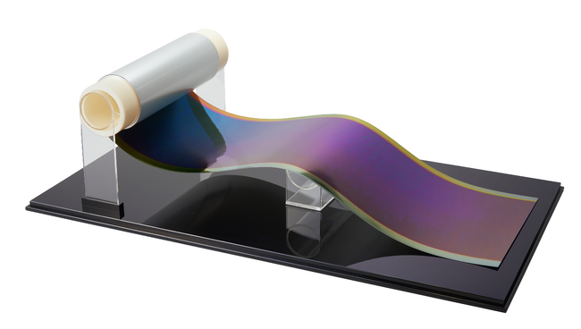 当社は、独自技術である「封止、成膜、材料、プロセス技術」により、業界に先駆けて屋外耐久性10年相当を確認し、30cm幅のロール・ツー・ロール製造プロセスを構築しました。さらに、同製造プロセスによる発電効率15.0%のフィルム型ペロブスカイト太陽電池の製造に成功しています。