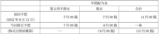 これにより、年間配当は株式分割前換算で14円から15円になります。
