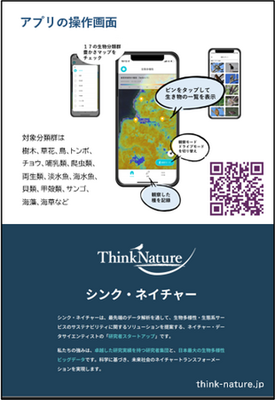 生物多様性科学において卓越した研究業績を有する研究者で構成されている琉球大学発スタートアップです(https://think-nature.jp)。世界の陸・海を網羅した野生生物や生態系の時空間分布を、自然史の研究論文や標本情報、リモートセンシング(人工衛星・ドローンによる観測)、環境DNA調査、野生生物の行動記録(バイオロギング)、植物・動物愛好者の研究などで収集された生物関連データ(地理分布、遺伝子、機能特性、生態特性など)を元にビッグデータ化し、AI等の最先端技術を用いたネイチャーの可視化や予測やシナリオ分析技術を有しています※3。TNFDのデータカタリストイニシアティブに参画し、自然資本ビッグデータを活用した自然の持続的利用に関する分析、評価、 ソリューション(TN LEAD※4)で、金融機関・機関投資家・企業の生物多様性対応を支援しています。