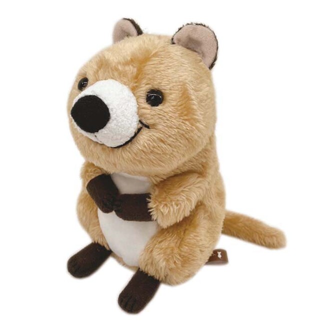 内容:クオッカはオーストラリア固有の動物で、ワラビーの仲間。つぶらな瞳とキュッと上がった口角が笑っているように見えることから「世界一幸せな動物」と言われています。ハッピーな表情は見ているだけで癒し効果抜群。デスク等にも置きやすいサイズ感です。