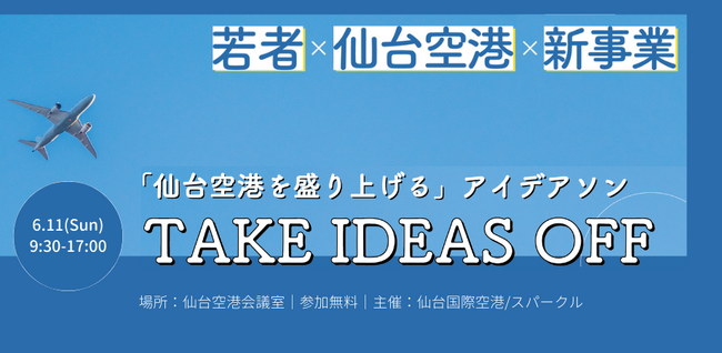 スパークル株式会社(本社:宮城県仙台市、代表取締役福留秀基、以下スパークル)は、若い柔軟な発想力を使って、空港や東北地方の課題を解決するアイデアを創出したいという想いから、仙台国際空港株式会社(代表取締役社長:鳥羽明門、以下仙台空港)と共に「Take ideas off 仙台空港アイデアソン」を企画し、2023年6月11日(日)に開催いたします。