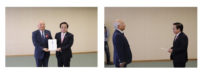 当社では山口県と姉妹連携先である米ハワイ州マウイ島山火事による被災を受けて2023年8月16日(水)から9月25日(月)までの期間に救援金の募金を丸久グループ各店舗と各事業所にて実施し、店頭の募金箱やイベントで募金いただいた救援金及び株式会社丸久からの災害見舞金を2023年10月6日に山口県議会議長 柳居俊学様に寄託いたしました。