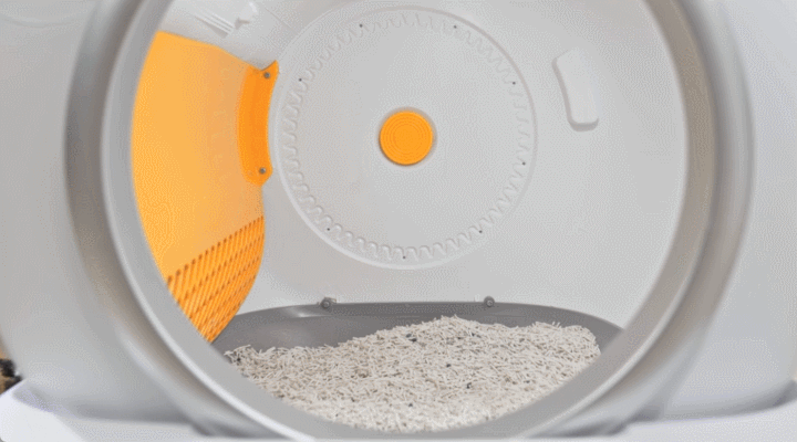 【Ti+M スマート猫用トイレ】は、赤外線センサーと重量センサーを搭載しているため、猫の出入りを感知し、トイレを終えた3分後に自動で清掃を開始します。バレル(樽)型の室内が回転して排泄物に猫砂をまぶし、メッシュのふるいで猫砂と排泄物を分離。外壁内に設置したゴミ袋へ排泄物だけを自動廃棄します。