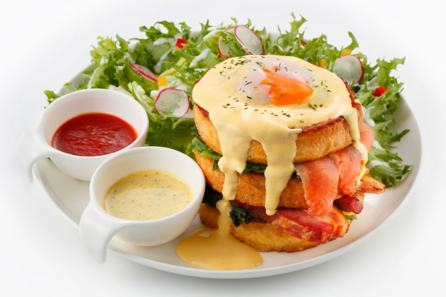 これまでのIvorish定番「エッグベネディクト」「スモークサーモンエッグベネディクト」に変わる第3のベネディクトとして『タワーエッグベネディクト』がスタートします。価格:レギュラー1900円(税別)