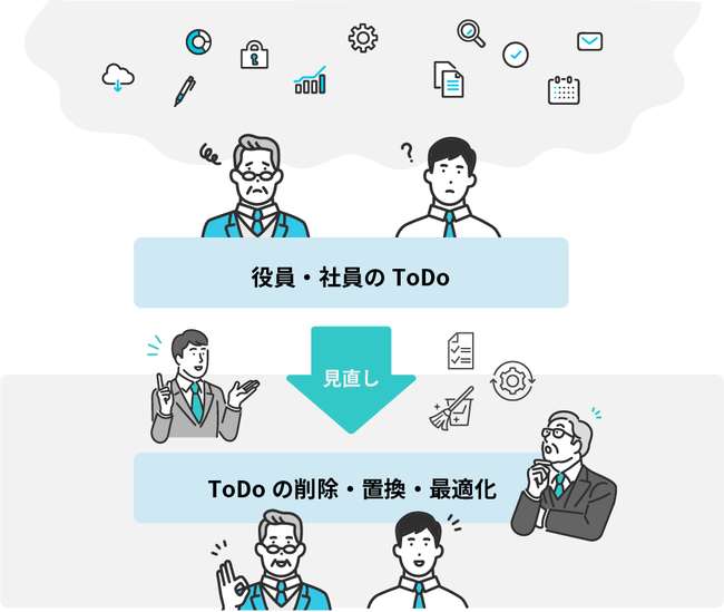 役員・社員、一人一人のToDoを最適に導き、今までにない時間の余裕を生みます。