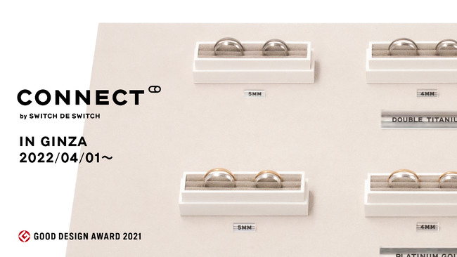 「2021年度グッドデザイン賞」(主催:公益財団法人日本デザイン振興会)を受賞した、2本で1つになるデザインが特徴の【ふたり指輪】としてジュエリーデザイナー 杉原 賢 によって2020年1月に発表された指輪ブランド『CONNECT(コネクト)』が、『JKPlanet 銀座2丁目店』にてブランド初となる店舗販売を4月1日より期間限定で開始いたします。