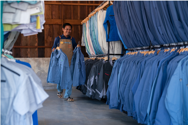 日本で不要になった作業着が、カンボジアのジャングルで必要とされる人々の安全を守り、そして現地環境の向上に繋がる、新たな循環型社会を形成しています。
