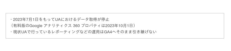 上記の理由から、現状の設定をGA4へ設計しなおす工数や、新たにレポートを作成する工数を考慮すると、移行には数ヵ月を要すると見込んでおく必要があります。