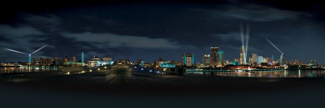 水際線や歴史的建造物、近代ビル群などが連動し、光と音楽で躍動する時間限定の演出。