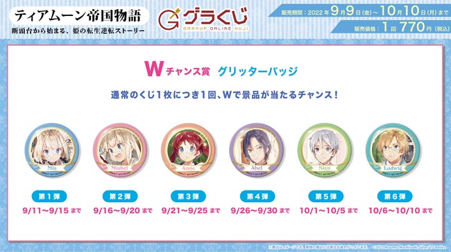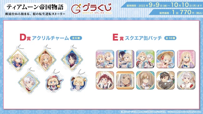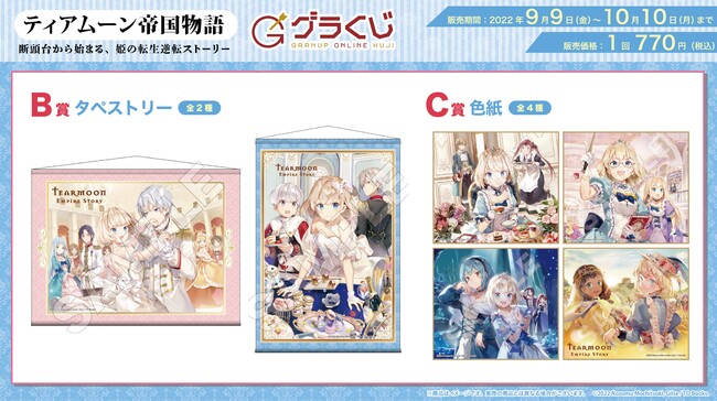 TVアニメ化決定で話題沸騰中!「ティアムーン帝国物語〜断頭台から始まる、姫の転生逆転ストーリー〜」のくじが9/9(金)〜『グラくじ』にて販売中!!他にも新作オンラインくじ商品が続々登場中☆