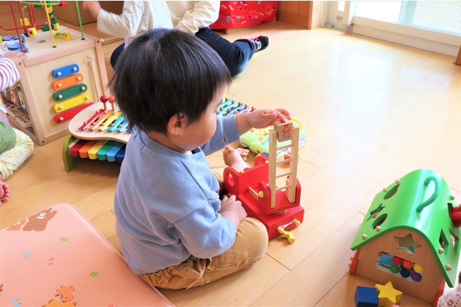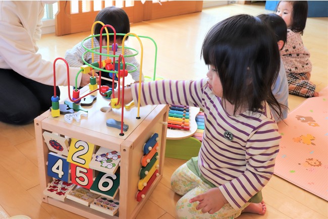 また、新入園児にとっておもちゃは周りの人との懸け橋となってくれます。初めての環境や人との関わりに躊躇してしまうこどもたちも、おもちゃを通してコミュニケーションをとることができ、先生との信頼関係構築にもつながっていきます。
