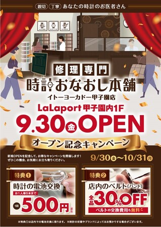 「修理専門 時計おなおし本舗」兵庫県西宮市のイトーヨーカドー甲子園店に9月30日出店