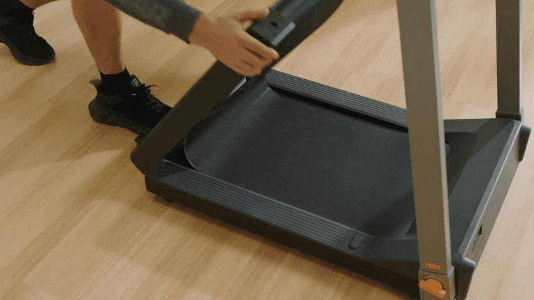 このランニングマシン、ランニングマシンなのに、折り畳めて収納できちゃうんです!