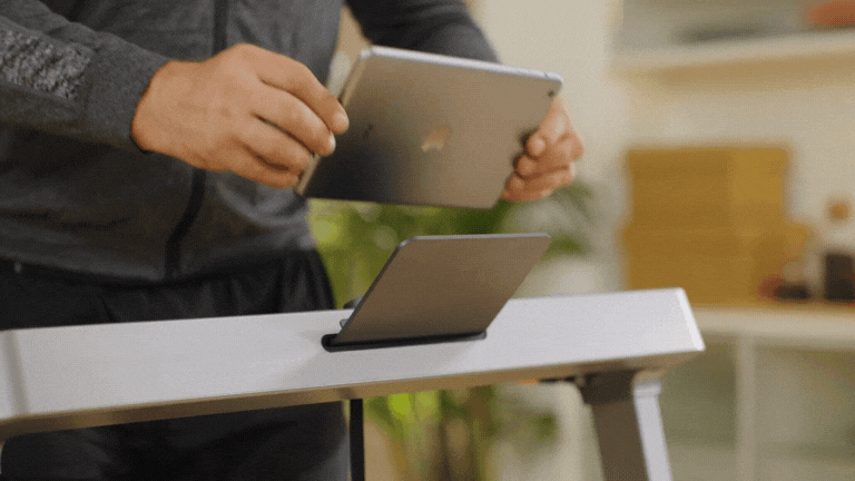 目の前にデバイススタンドがあるので、あなたのデバイスを置いて好きなコンテンツを再生してランニングスタート!