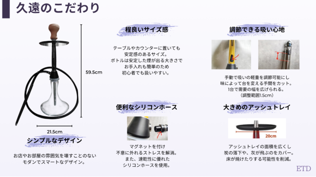第一弾としてまずは、自社が得意とする持ち運びシーシャの販売をスタート致します。